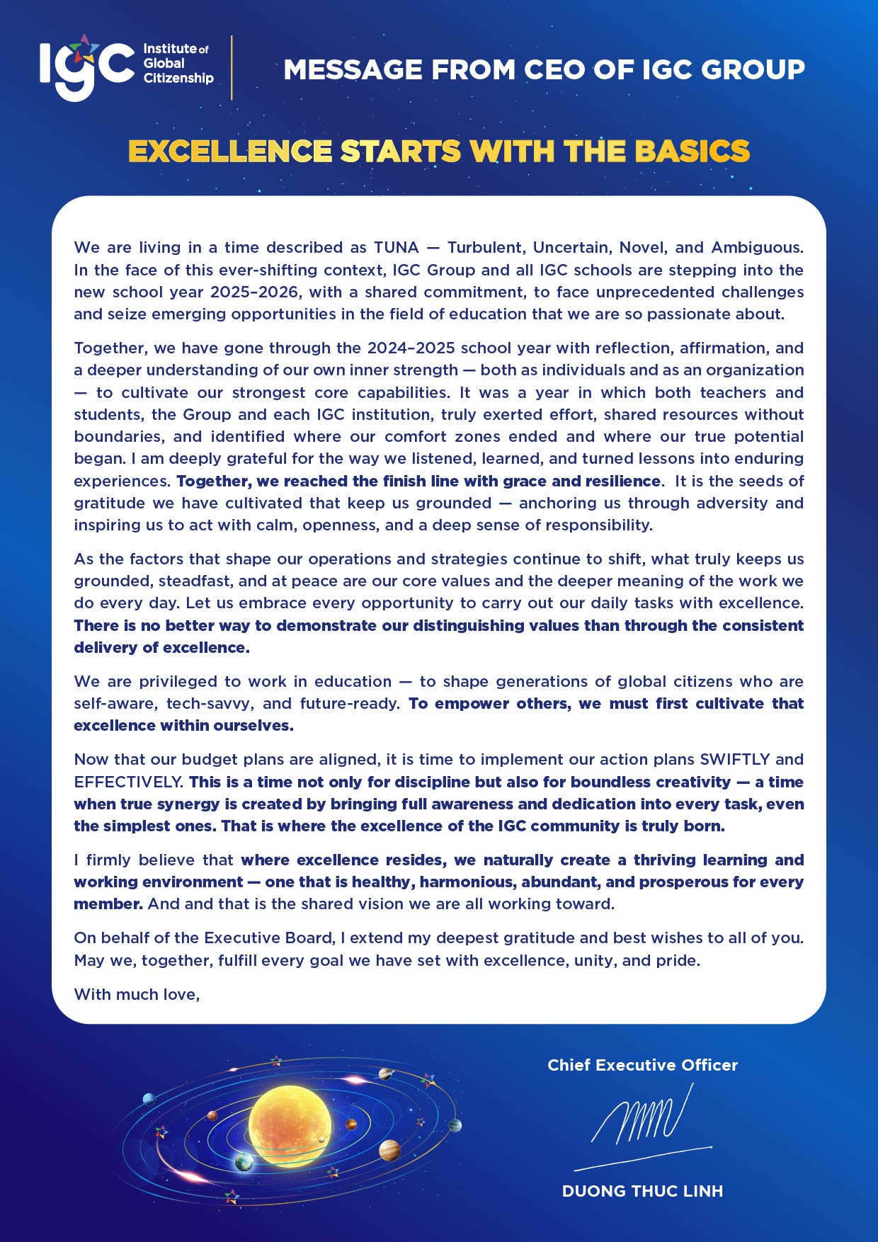 Message From CEO at the beginning of the 2025-2026 school year