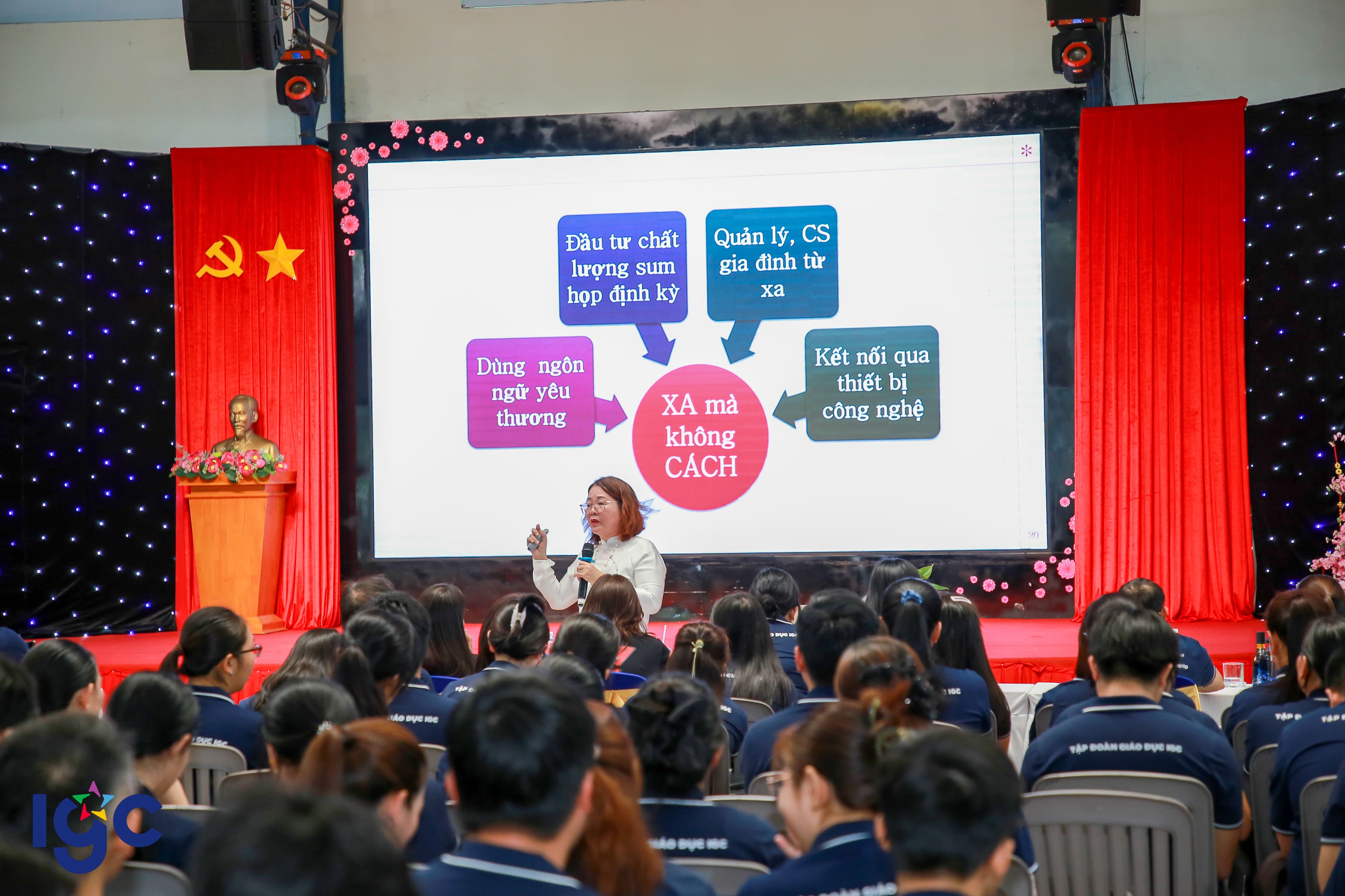 Thấu hiểu và thực hành giá trị ấy, vừa qua, gần 1.300 thành viên IGC đã cùng tham gia hành trình đầy cảm xúc tại hội thảo chuyên đề tâm lý “Gia đình hạnh phúc - Lớp học hạnh phúc” với sự chia sẻ của TS. Nguyễn Thị Bích Hồng – Thành viên Hội đồng Cố vấn Tập đoàn Giáo dục IGC. Chương trình diễn ra theo hình thức trực tiếp và trực tuyến từ trường THPT Lê Quý Đôn – Long Bình Tân, mang đến nhiều góc nhìn sâu sắc về vai trò của gia đình trong việc nuôi dưỡng cảm xúc, hình thành nhân cách và kiến tạo hạnh phúc cho mỗi người.
