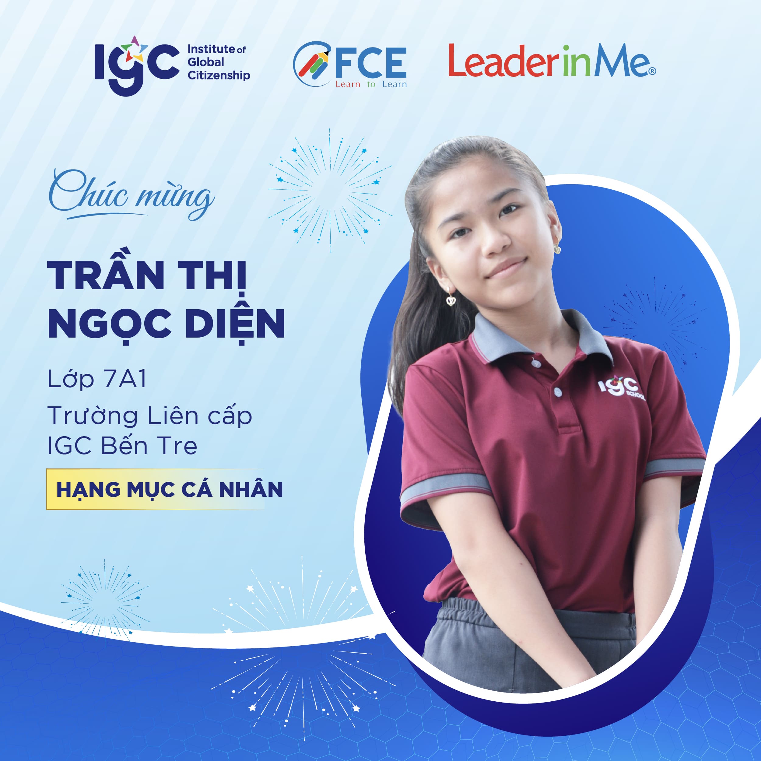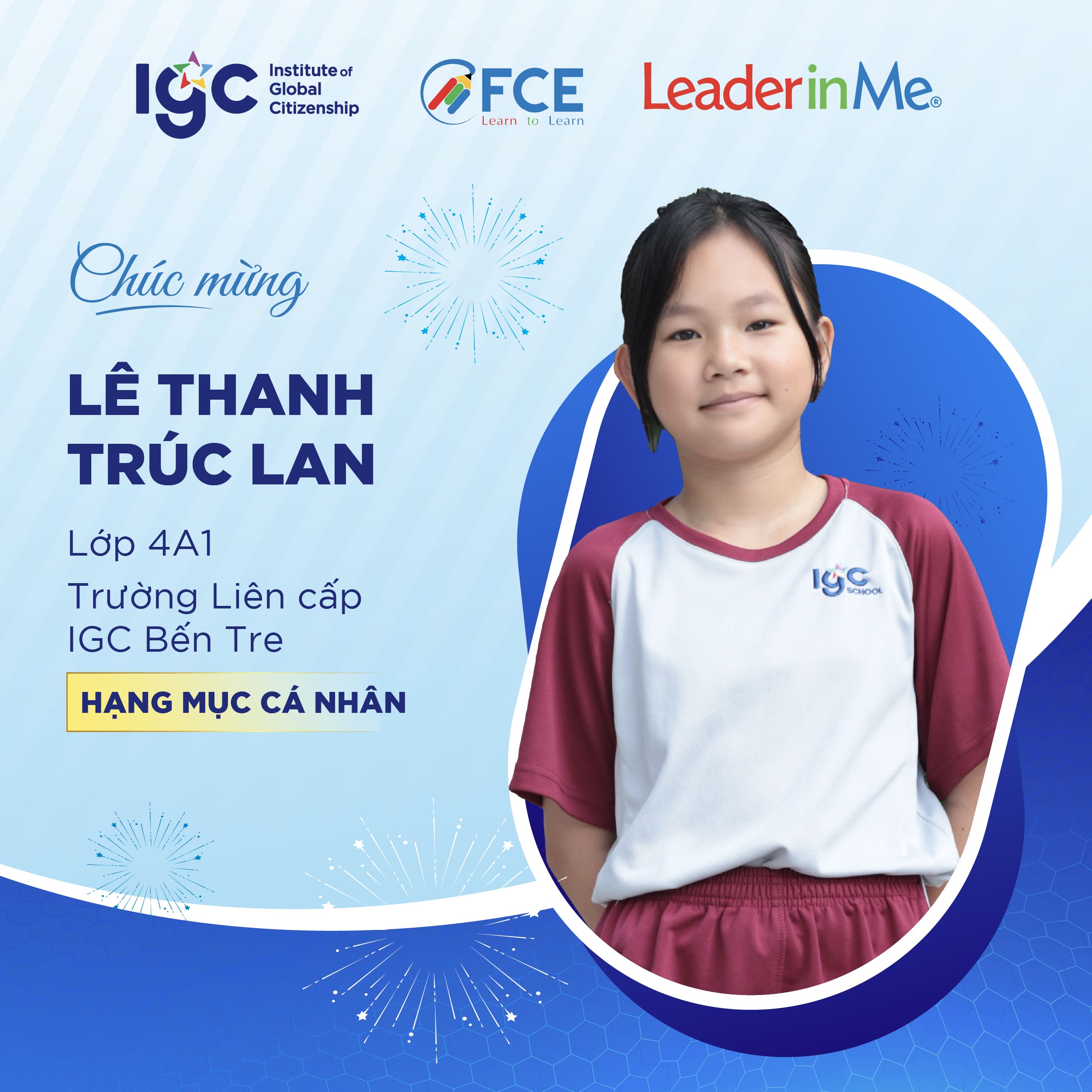 Học sinh trường liên cấp IGC Bến Tre xuất sắc góp mặt trong Top 30 vòng quốc gia hạng mục cá nhân tại cuộc thi Leader in Me 2026