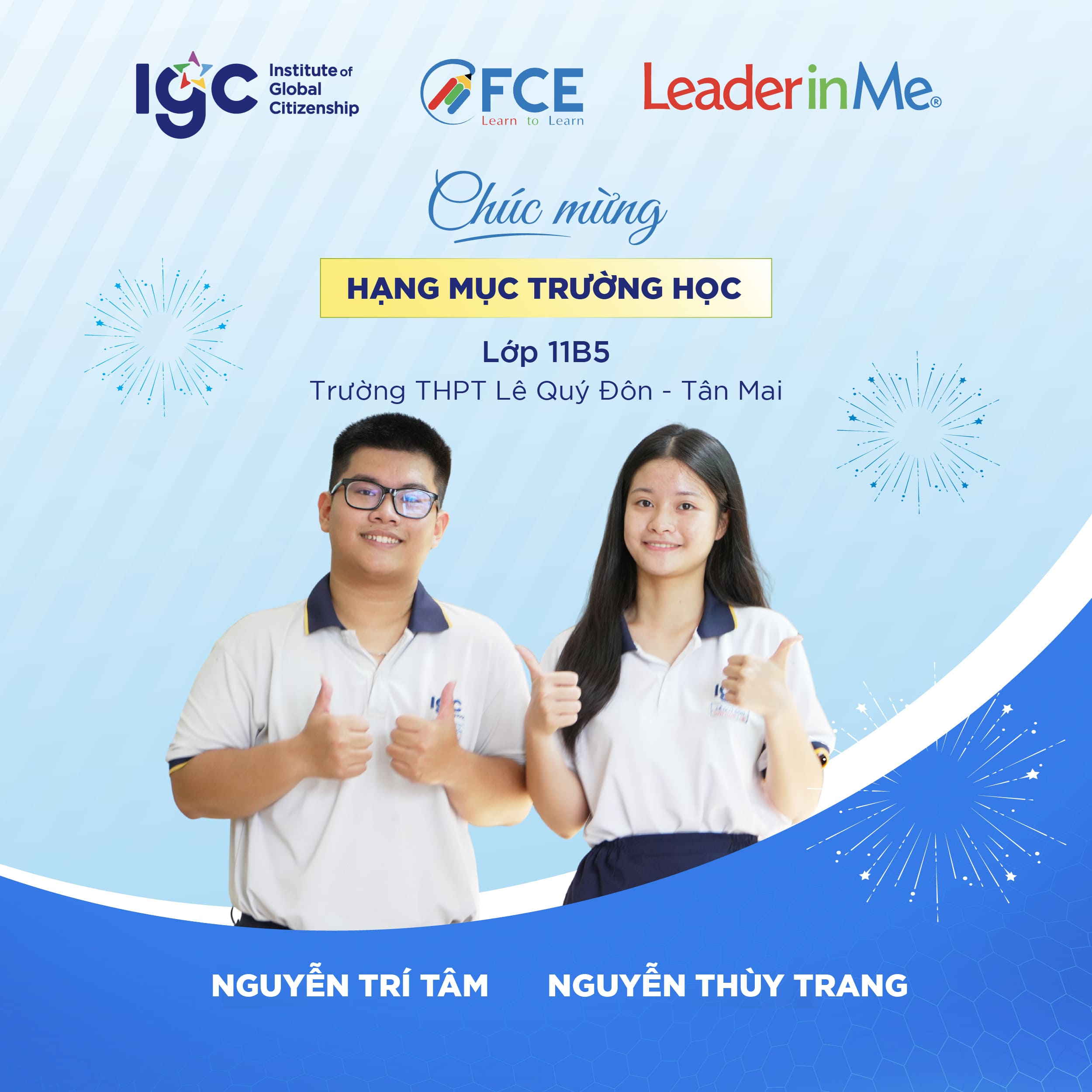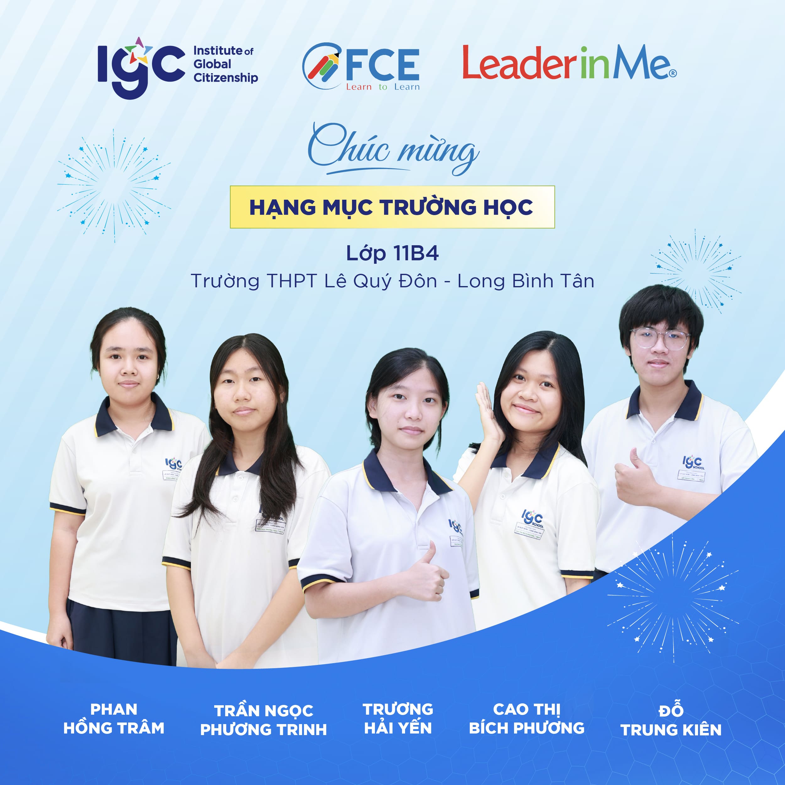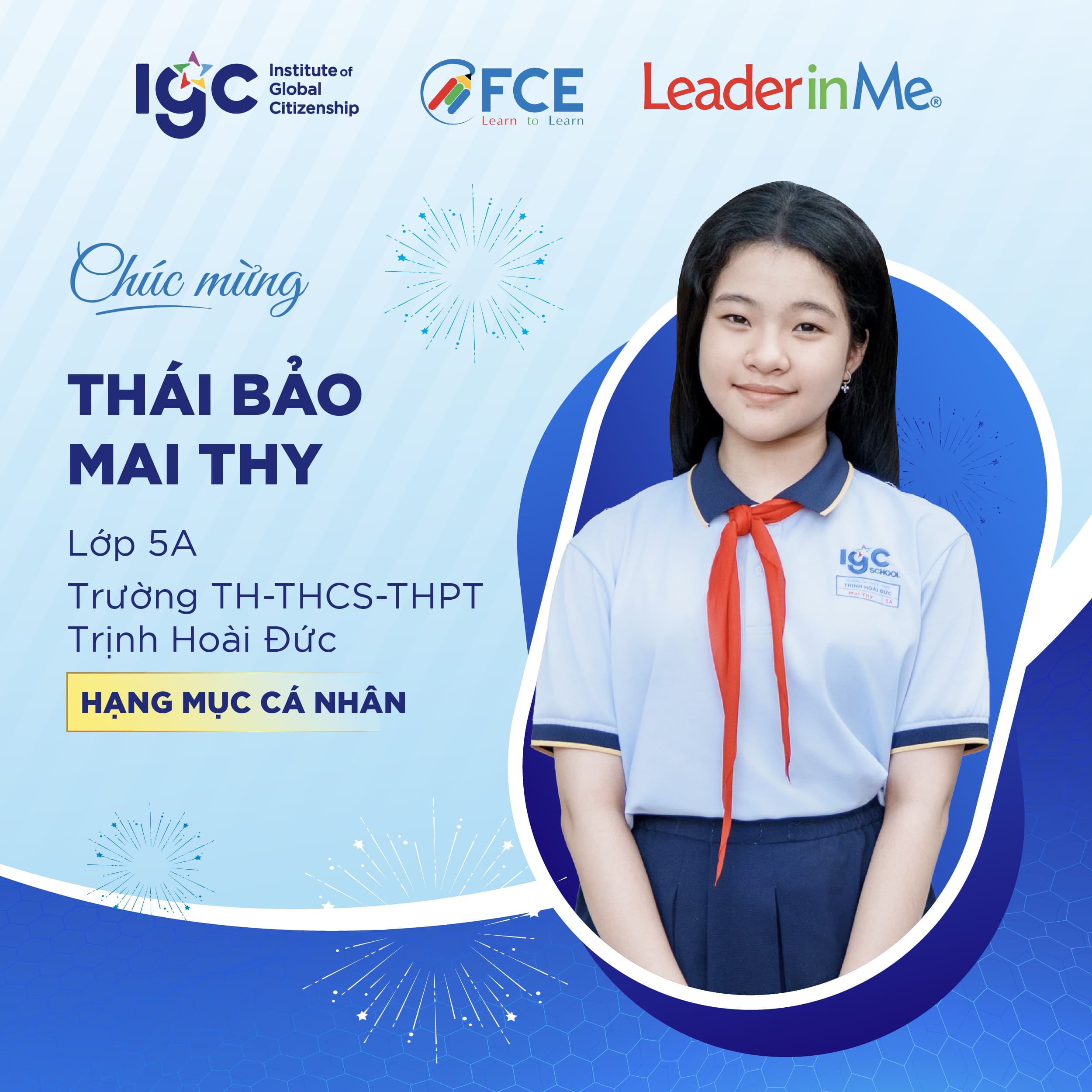 IGC Group tự hào chúc mừng 7 học sinh và 2 tập thể trường đã đại diện Việt Nam góp mặt trong Top 30 vòng Quốc gia cuộc thi Leader in Me 2026.